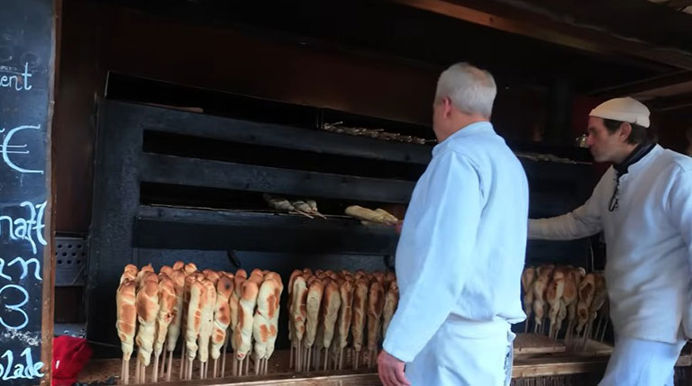 This is Stockbrot or Stickbread, basically dough baked on a stick that is fun to walk around