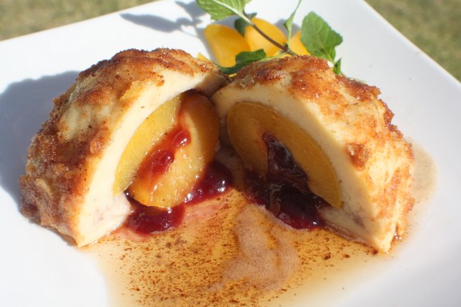 Spaetzle baked with Swiss cheese and topped with caramelized onion. |