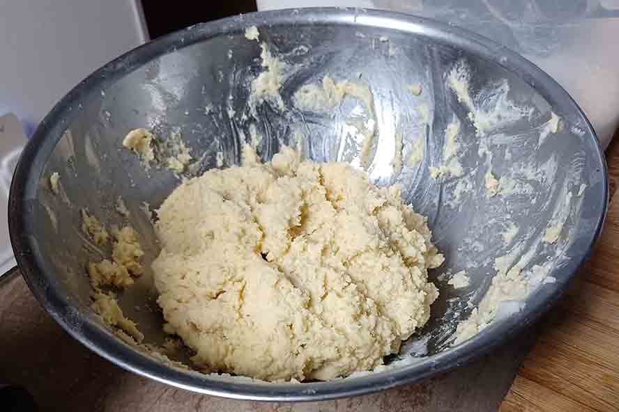 First, boil enough potatoes to make 1 cup of mashed potatoes.