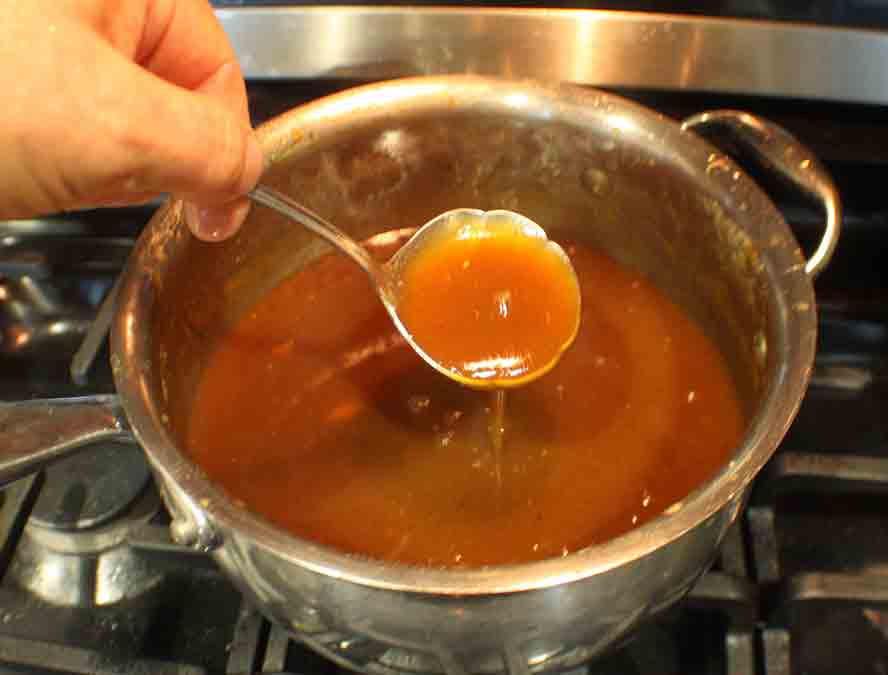 Melt the butter in a pan, add the brown sugar and vanilla.