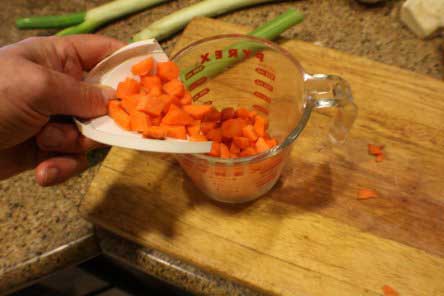 Chop the carrots in small wheels or if the carrots are large into half wheels.   |