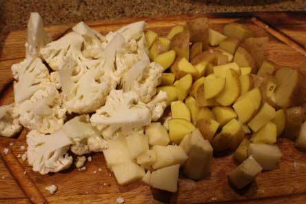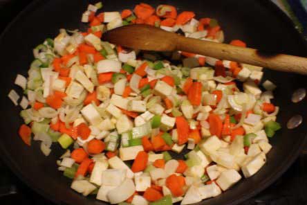 While the potatoes and cauliflower are cooking saute the Suppengrün in a little olive oil till tender   |