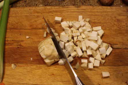 The celery root has a much richer celery flavor than the stalk. The Leeks are richer than regular onions. These vegetables will add real depth of flavor to this dish.