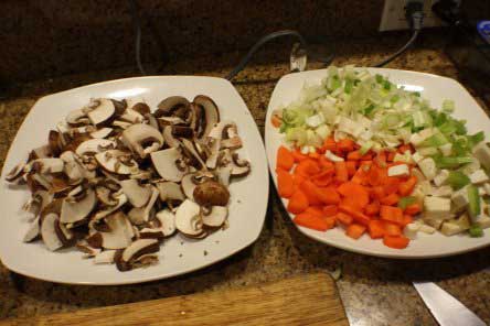 Keep on plate till ready to cook. If this is the first time your making it keep some of the items on seperate plates to keep things organized.
