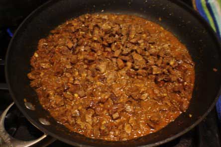 Add 2 cups or water or beef stock and simmer till beef is tender.