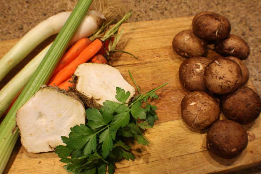 Read more about these here                    While the longer cooking items are simmering, gather your Suppengrün ingredients and Mushrooms for chopping.