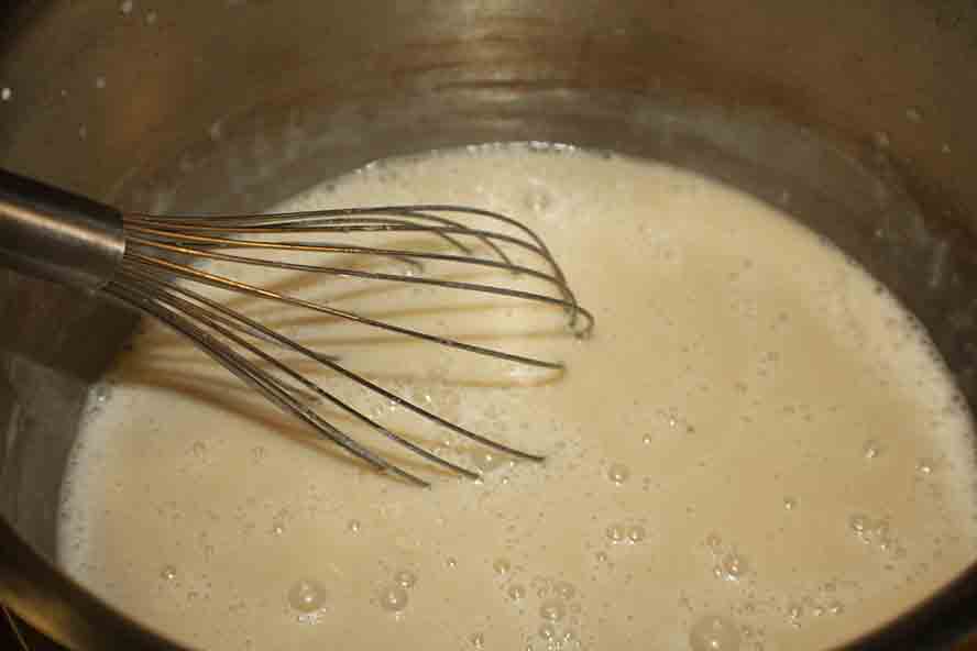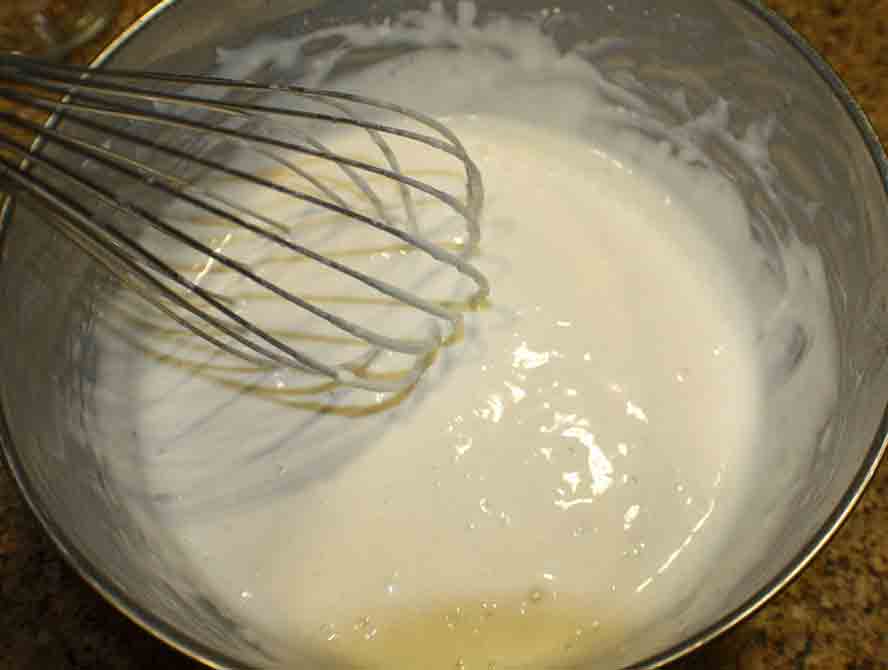Mix the sour cream with the flour till smooth in a bowl.