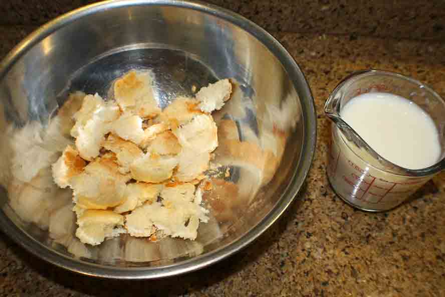 'Soak the roll in the milk about 10 minutes and squeeze dry.
