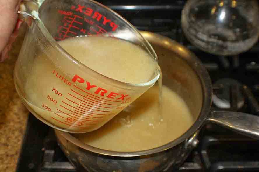 I then added about 4 cups of broth to the sauce pan, and bring to a simmer.