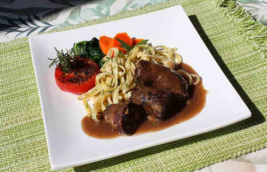 I served 2 Rouladen and with your choice of potatoes or noodles, and plenty of gravy. |