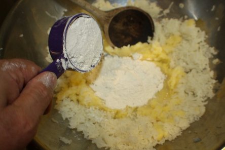 Keep adding small amounts of flour until you have a soft smooth dough, trying not to overwork it or to get too much flour into the mixture (otherwise the dumplings might be too dense).