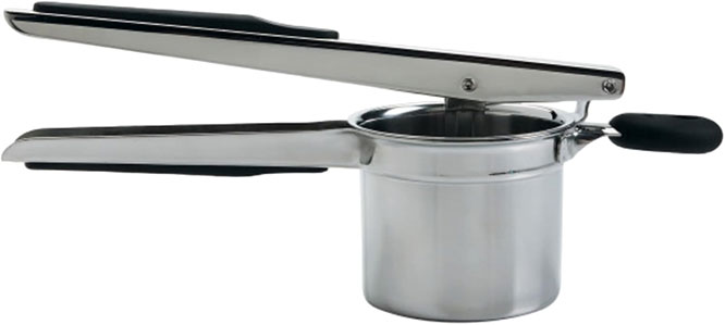 Now you need to sqeeze the water out of the potatoes. This is very important. . A potato ricer squeezes out the water well without too much effort.