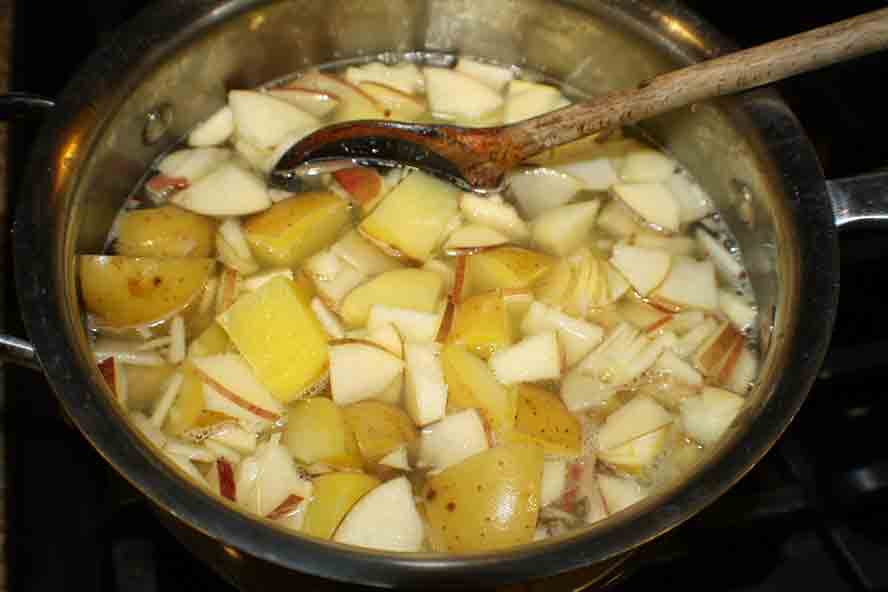 Cook the potatoes and apples together,