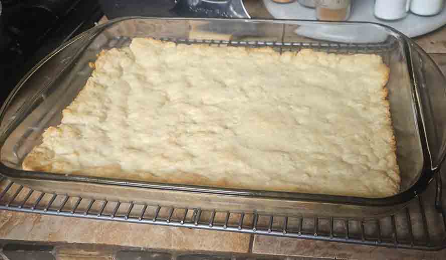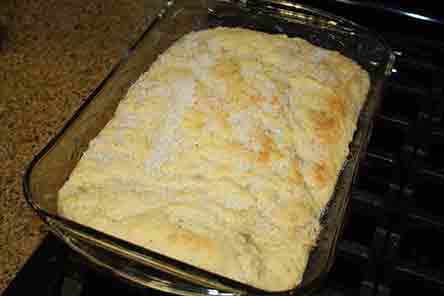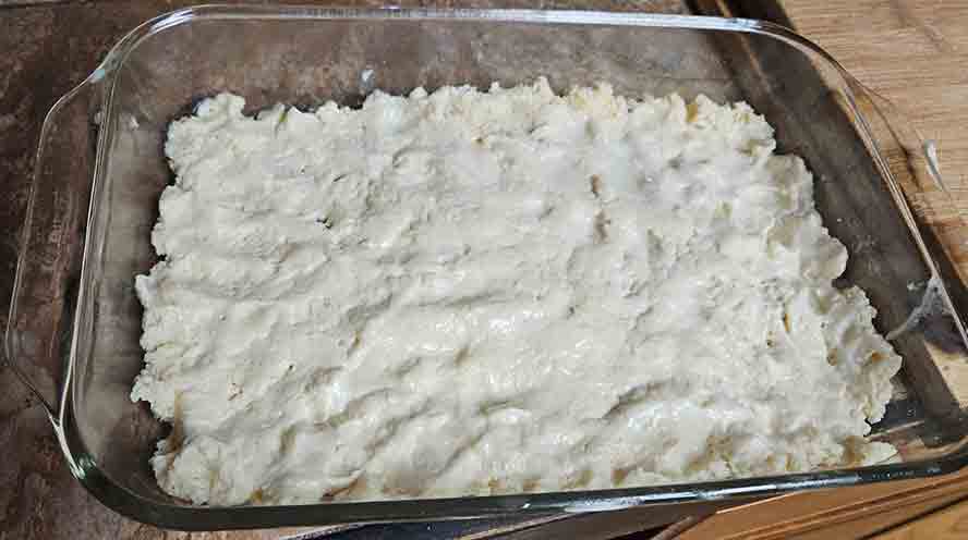 Here is the dough pressed into the 9 x 13 pan.