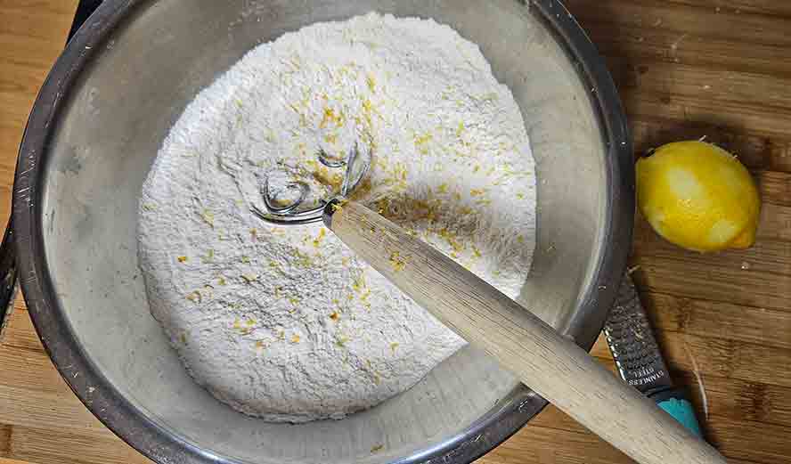 Mix the dry ingredients all together with the lemon zest.
