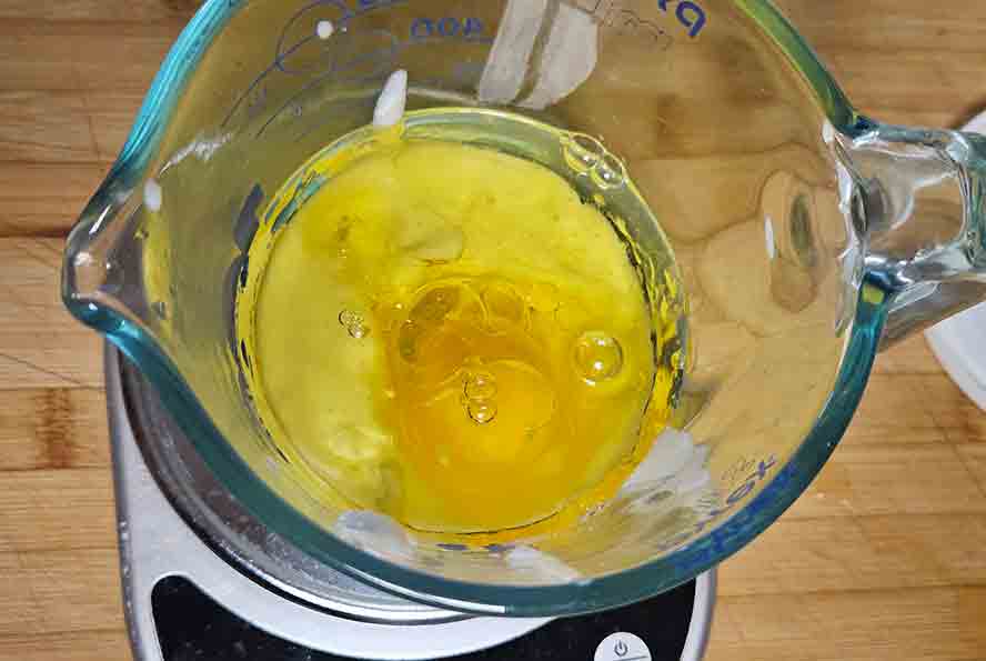 Add the melted butter or oil and mix.