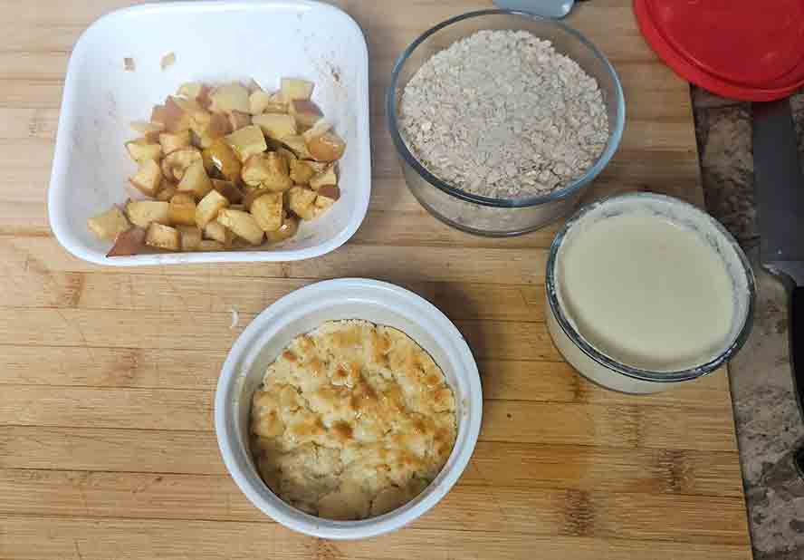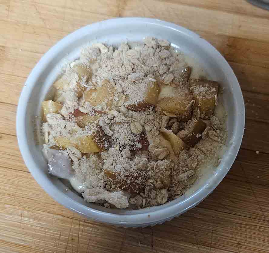 The apple I cut up and baked in the air fryer for 8 min. with some butter and vanilla extract.