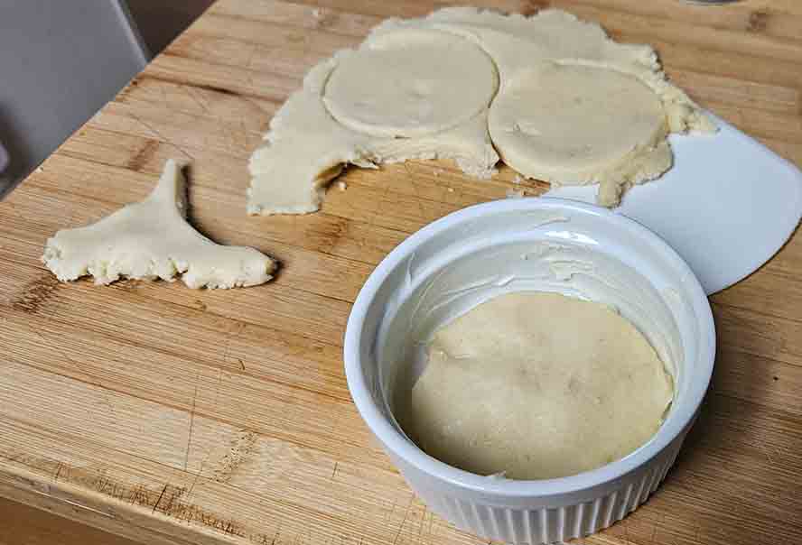 Put the crust into a buttered Ramekin, or a similar kind of dish.