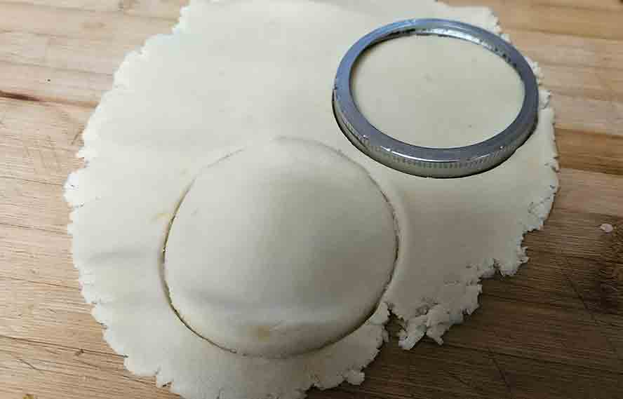 Roll out the Basic Kuchen Dough about 1/4 inch thick and cut with a mason jar lid or anything that works.