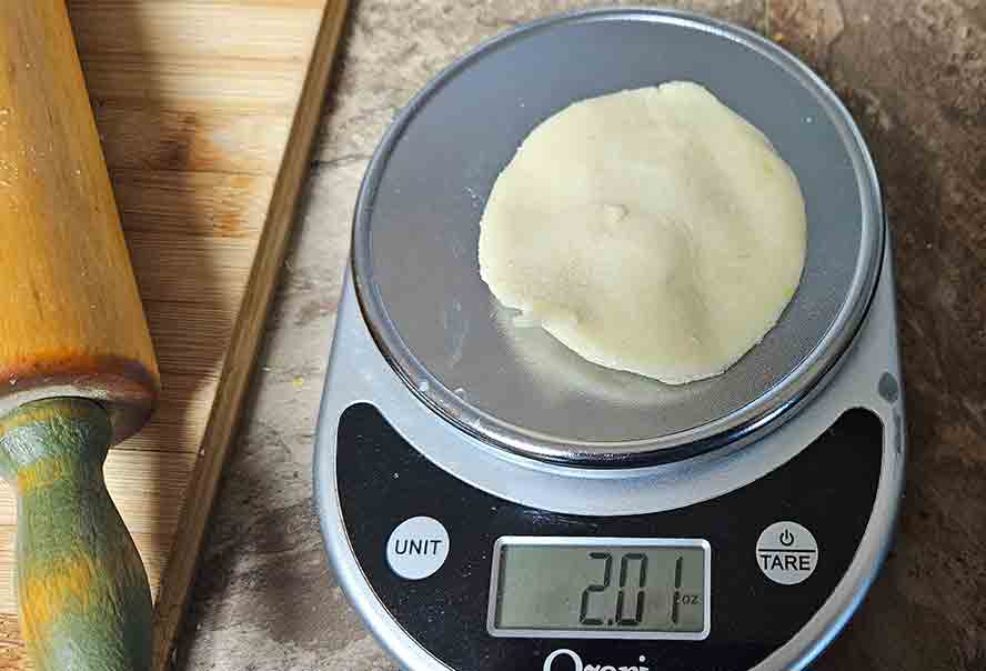Weigh out the Kuchen dough to "about" 2 oz. You don't want to get too much or too little.