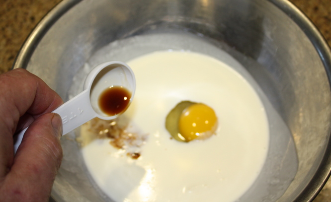 2. Add melted (not hot) butter, warmed milk, salt, lemon peel, and beaten eggs. Mix well.