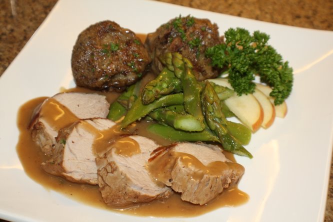 While the marinade is coolong trim the Pork Tenderloin of fat and grissle.