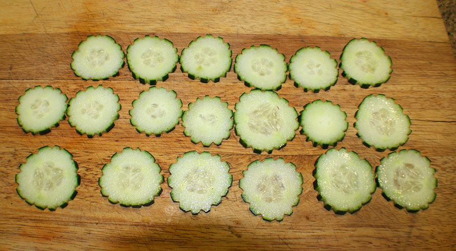 I like to salt the cucumbers. You don't have to line them up.