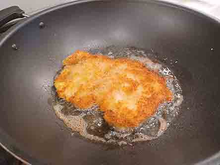 Gently turn the Schnitzel once and brown the other side.