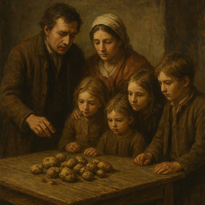 | The pastor raised his hands. “I know your doubts. But the grain has failed. The potatoes have not. If we do not eat them, we may have nothing at all.”Phillip said nothing. He simply nodded to Maria and left the hall. |