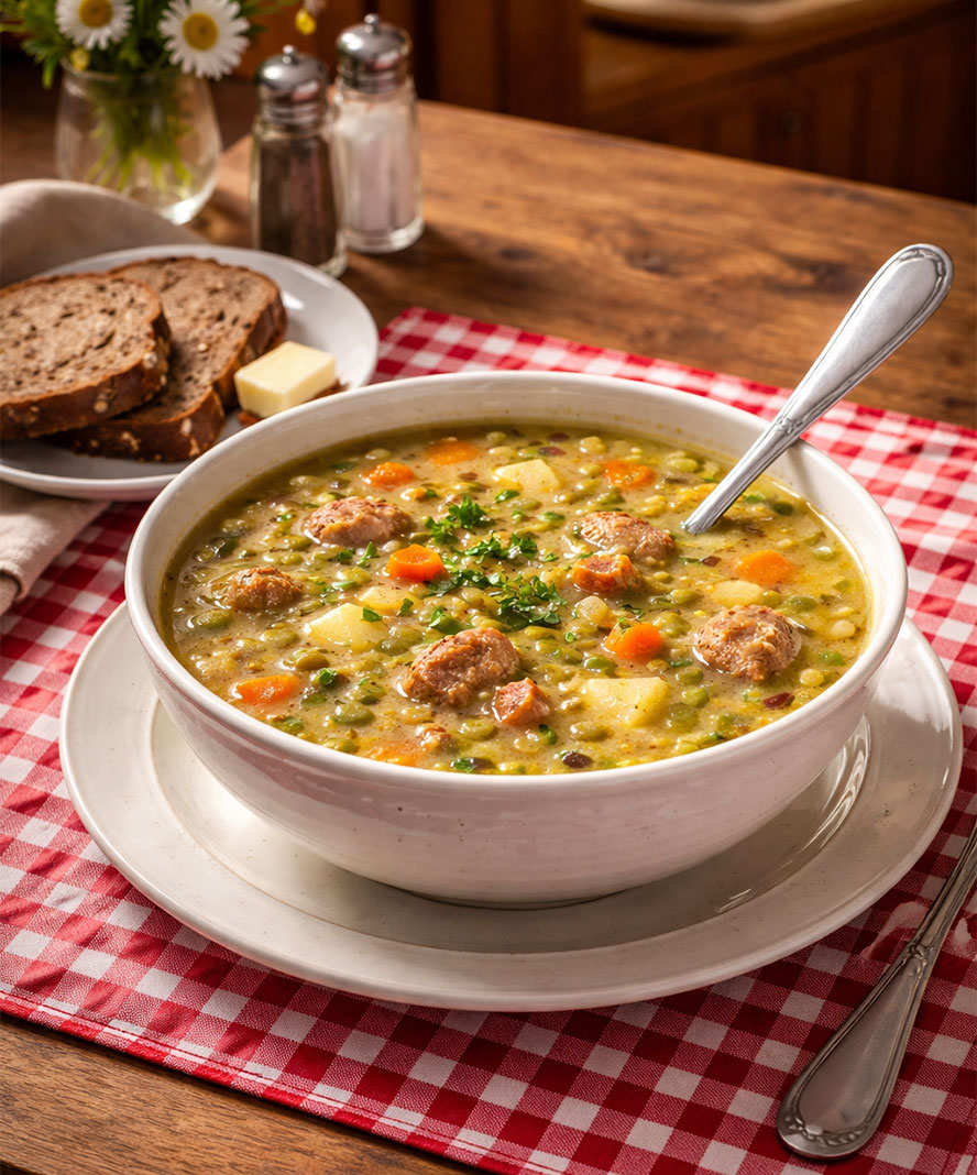 a simple pot of peas carrying centuries of practicality, thrift, and quiet comfort.